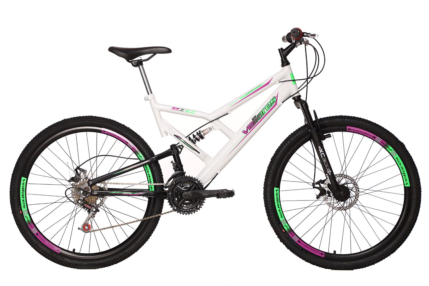 BICICLETA VELLARES DOBLE SHOCK ARO 26 DUPLA SUSPENSÃO 21M VIOLETA/VERDE