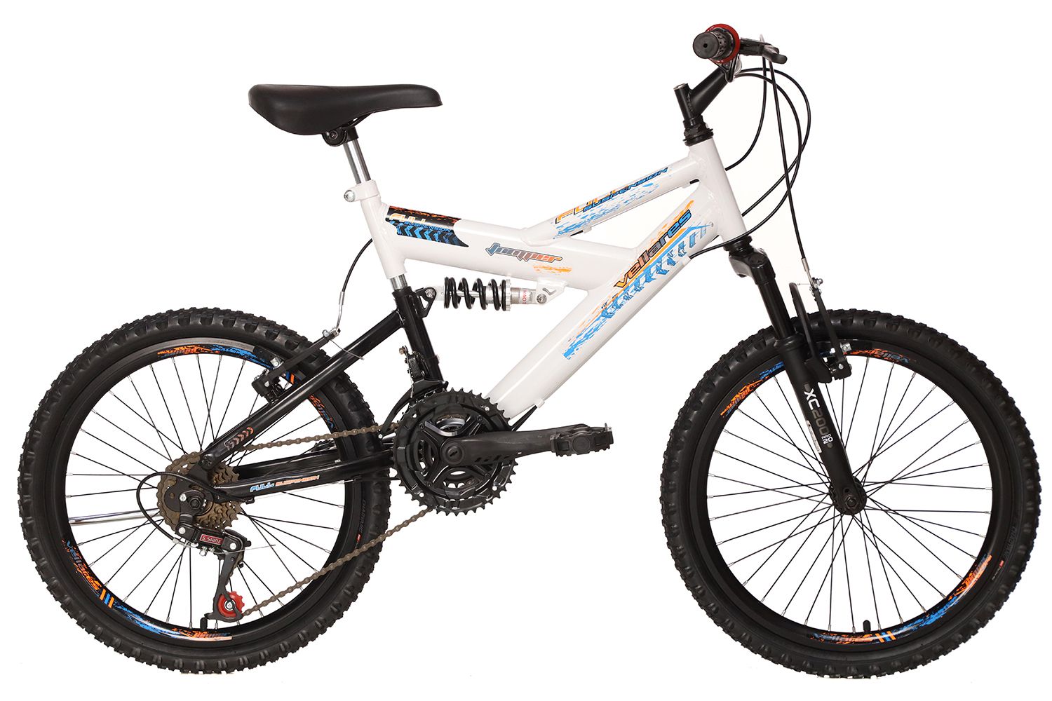 BICICLETA VELLARES JUMPER ARO 20 DUPLA SUSPENSÃO 21M LARANJA/AZUL