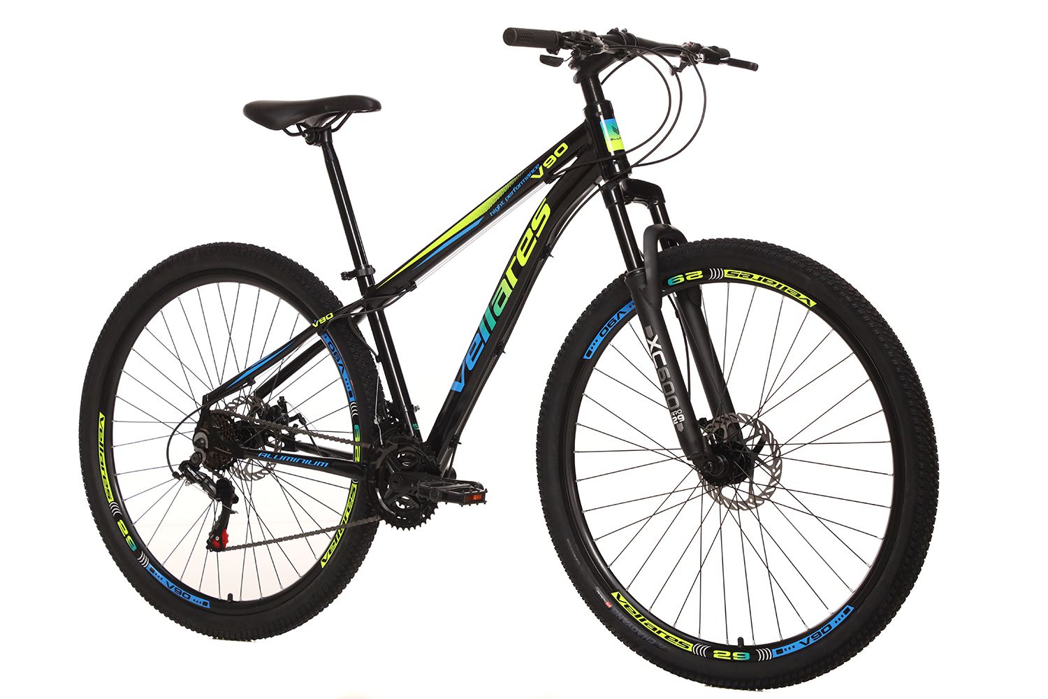 BICICLETA V90 ARO 29 QUAD. 15,5 ALUMINIO CAMBIO SHIMANO 21M 4345-0131D AMARELO LIMAO/AZUL VELLARES